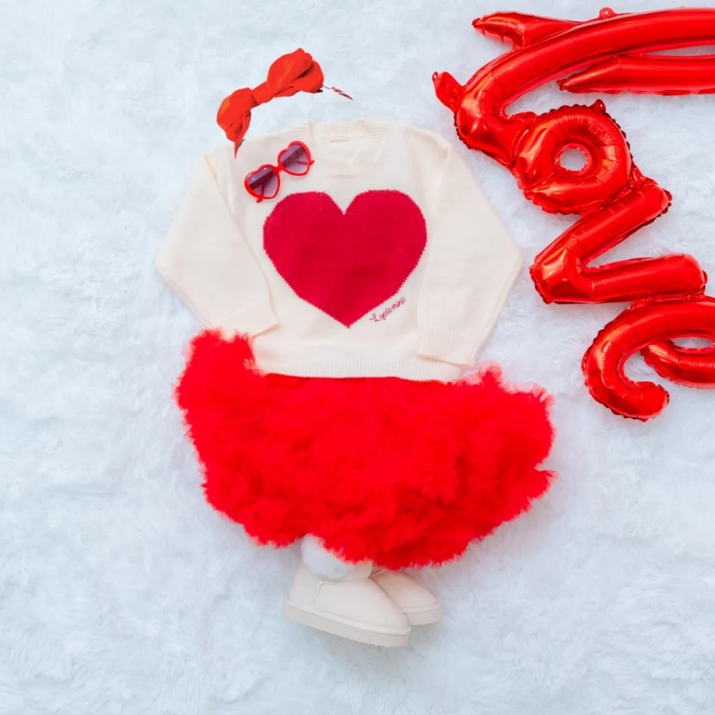 赤いリボンのヘアアクセサリー・赤ニット帽・ハートサングラス等