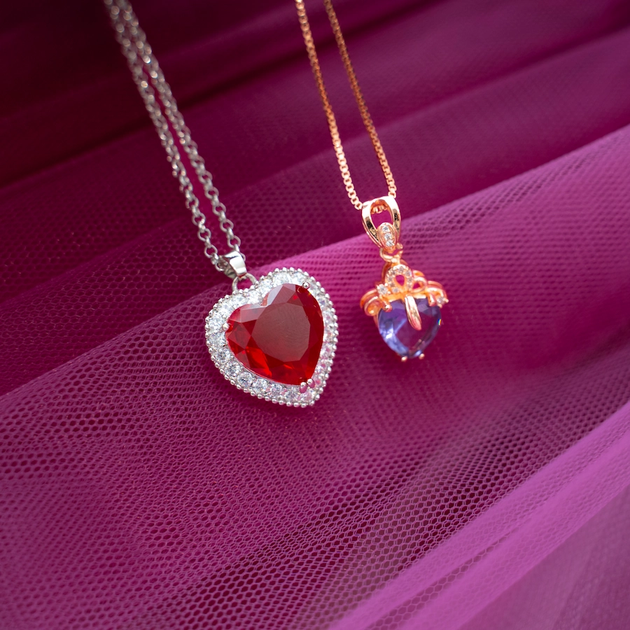 ◆ハートのネックレスは2種類(赤×ゴールド、紫×ゴールド)からお選びいただけます