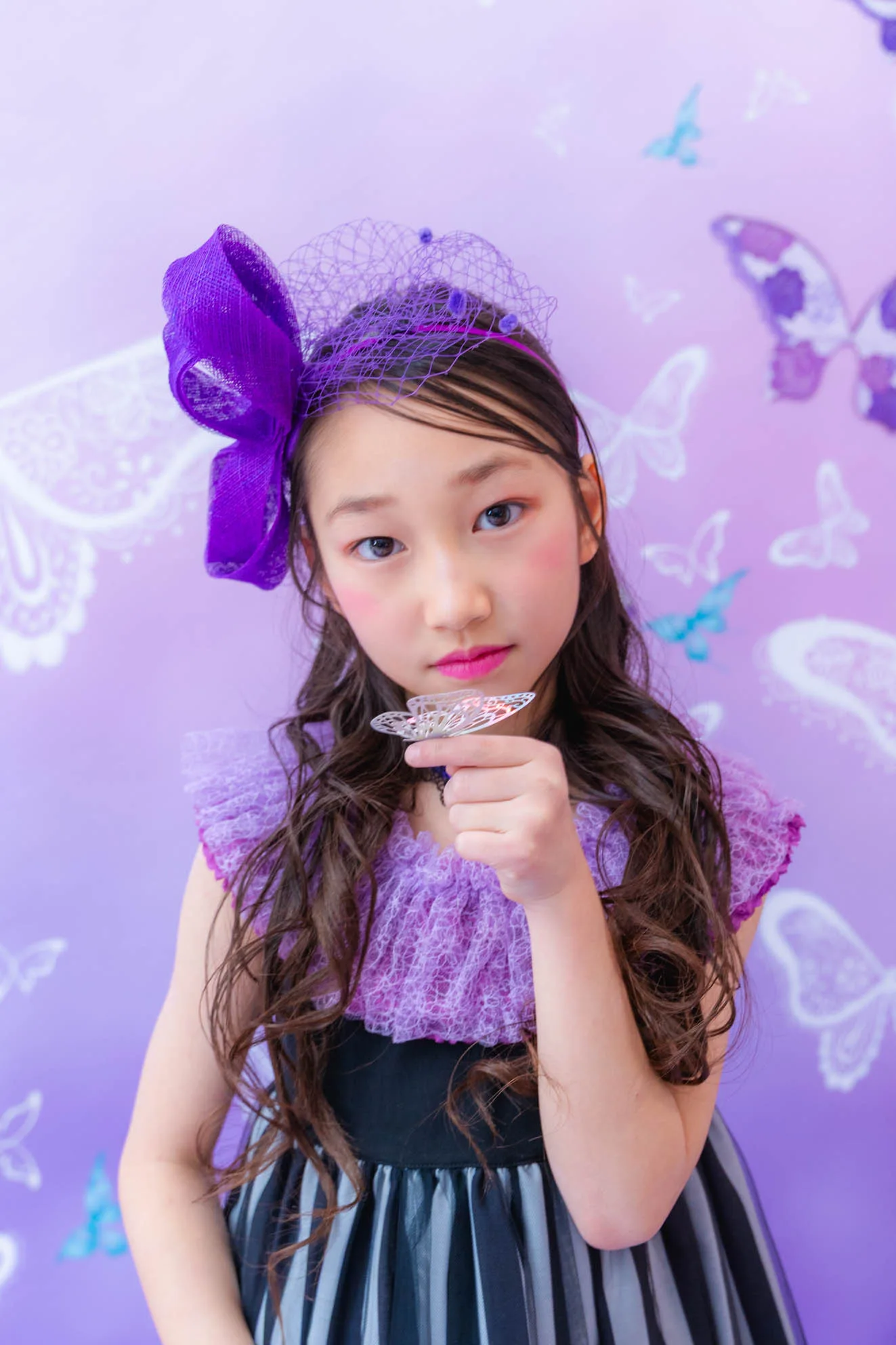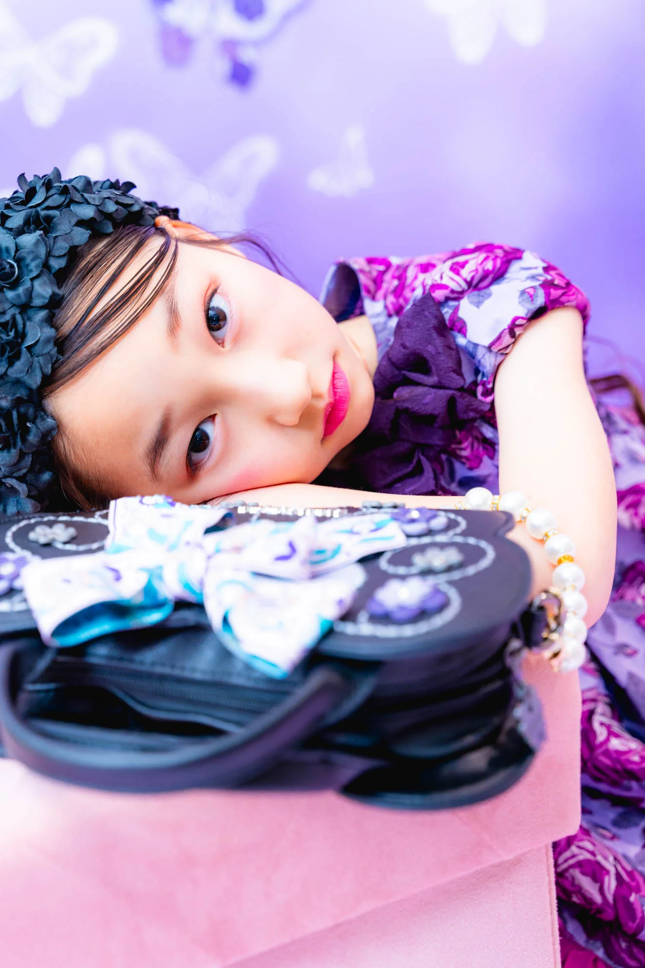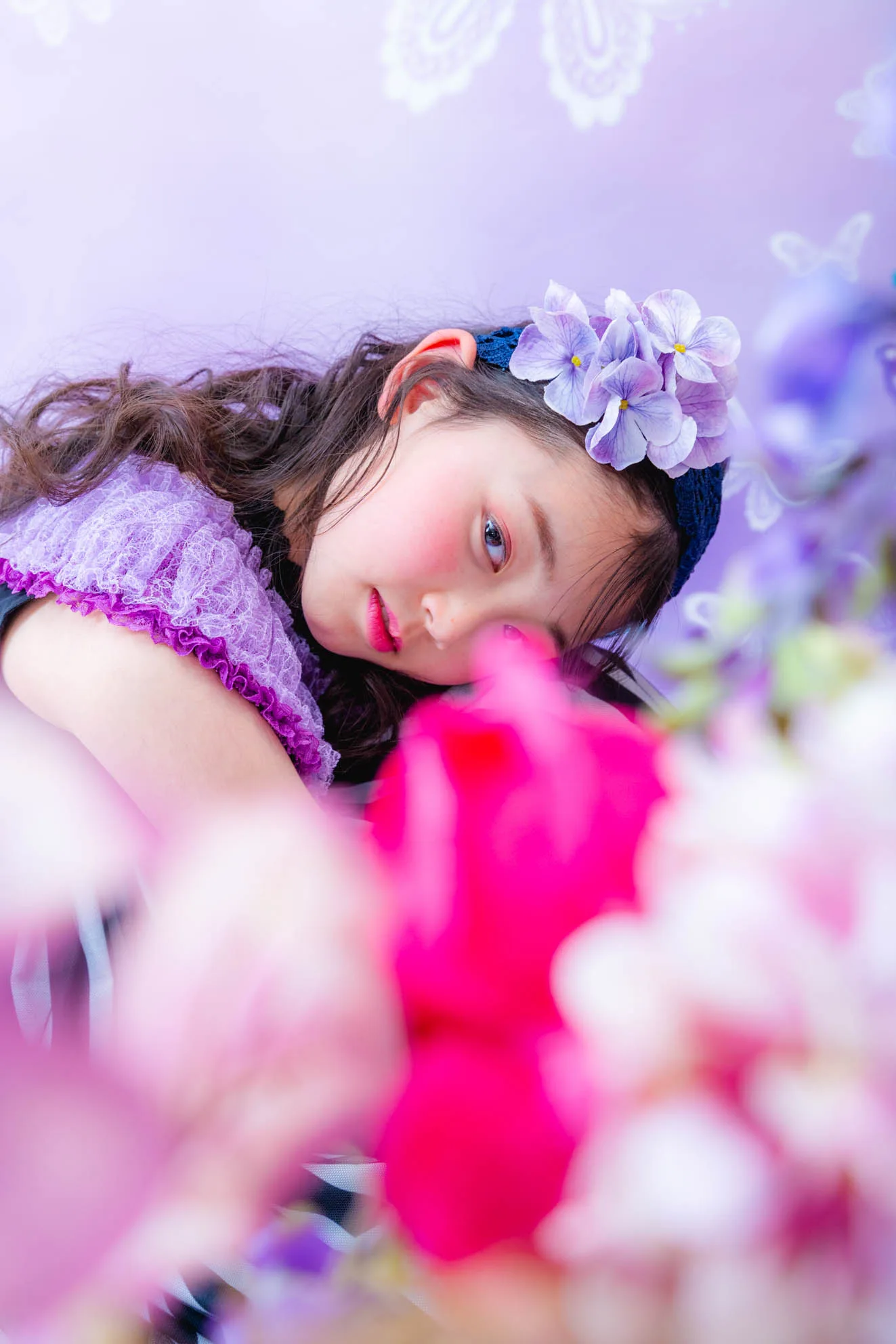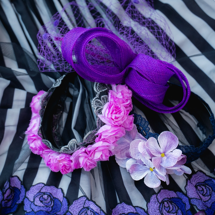 ◆ヘアアクセサリーは3種類(ラベンダーピンクフラワーカチューシャ、チュールリボンカチューシャ、アクセントフラワーカチューシャ)からお選びいただけます