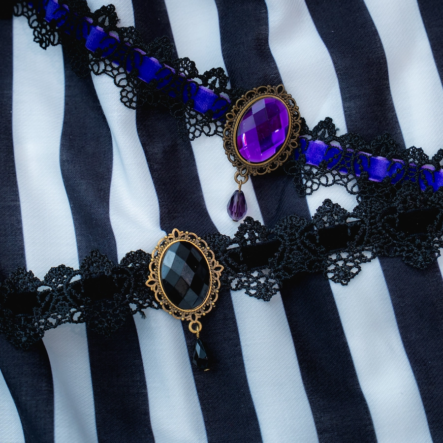 ◆チョーカータイプのネックレスは2種類(黒、紫)からお選びいただけます