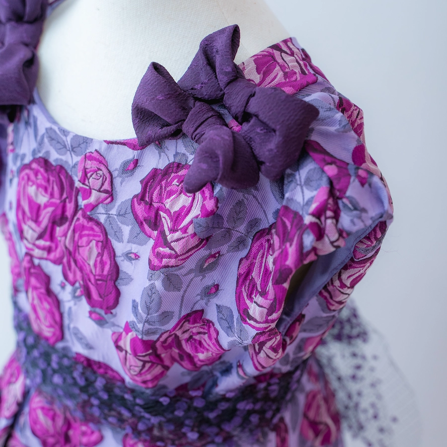 ◆ラベンダーローズのジャガード織がエレガントなドレス