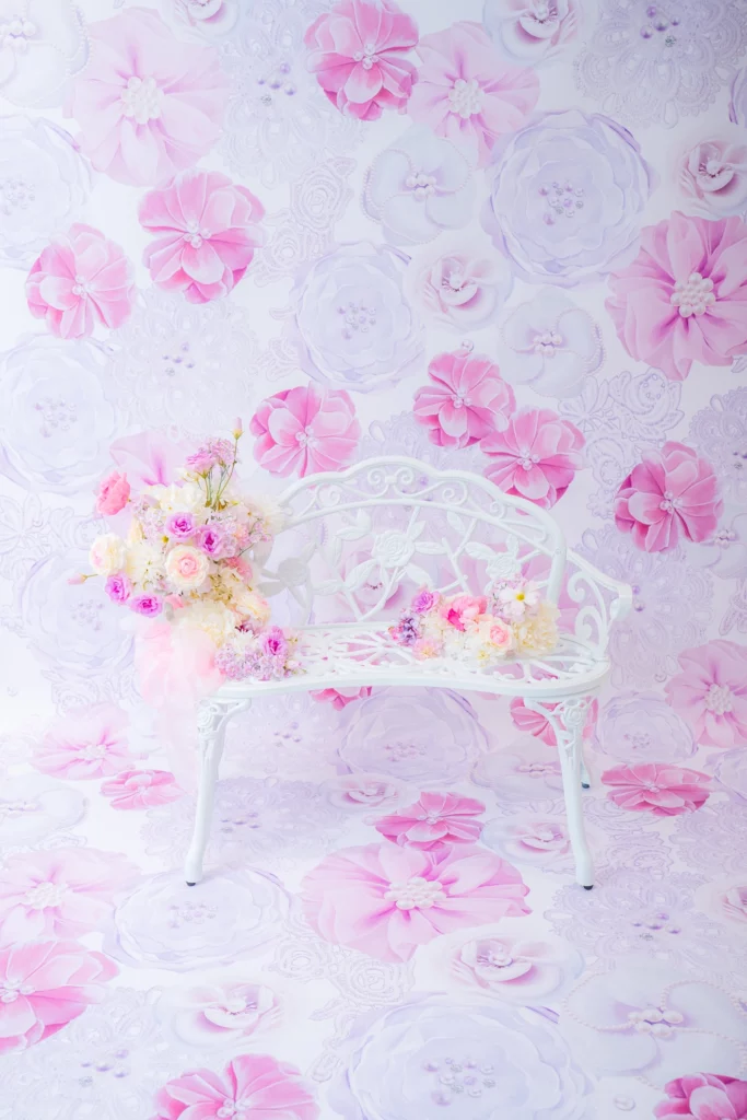レースやフリルの繊細な装飾に、クラシカルなピンクグラデーションで仕上げた