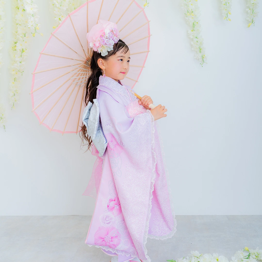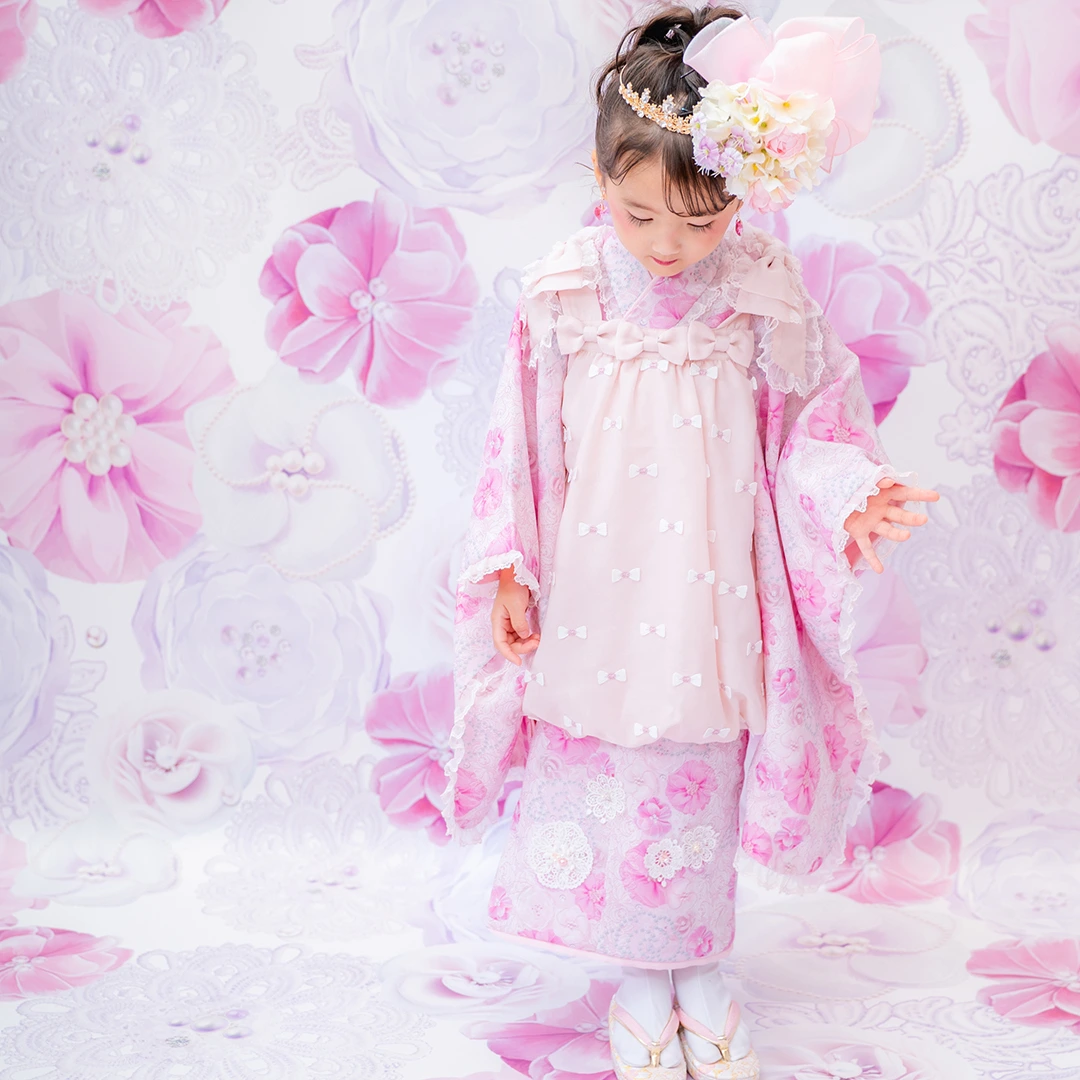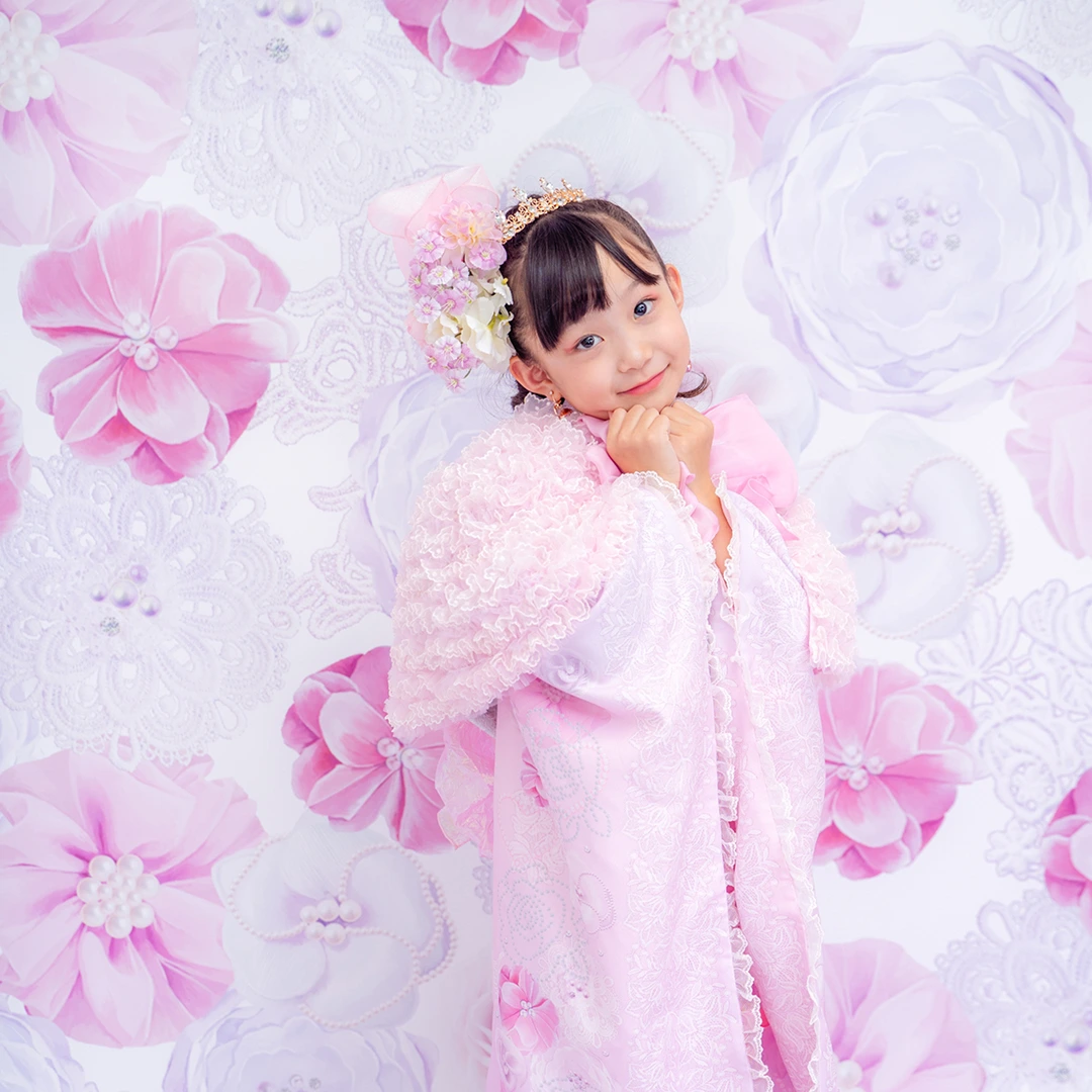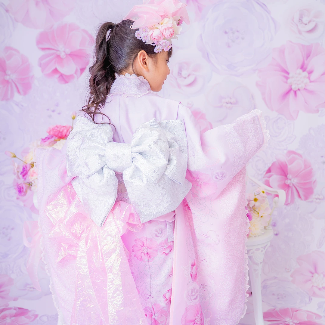 7歳モデルが着用しているメゾ ピアノ着物(7歳)フローラルエレガンス(衣装番号63008)
