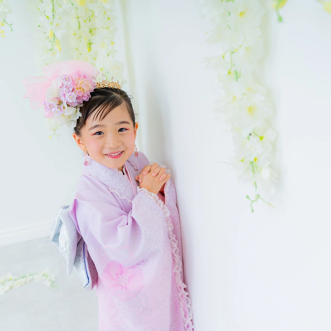 七五三撮影は、満3歳頃からの撮影をオススメしております。年齢に限らず、お着替えやヘアセットをすることを受け入れてくれるようになってからの撮影がオススメです。また、3歳用のお着物のサイズは95㎝〜105㎝が目安となりますので、撮影時期についてご検討ください。