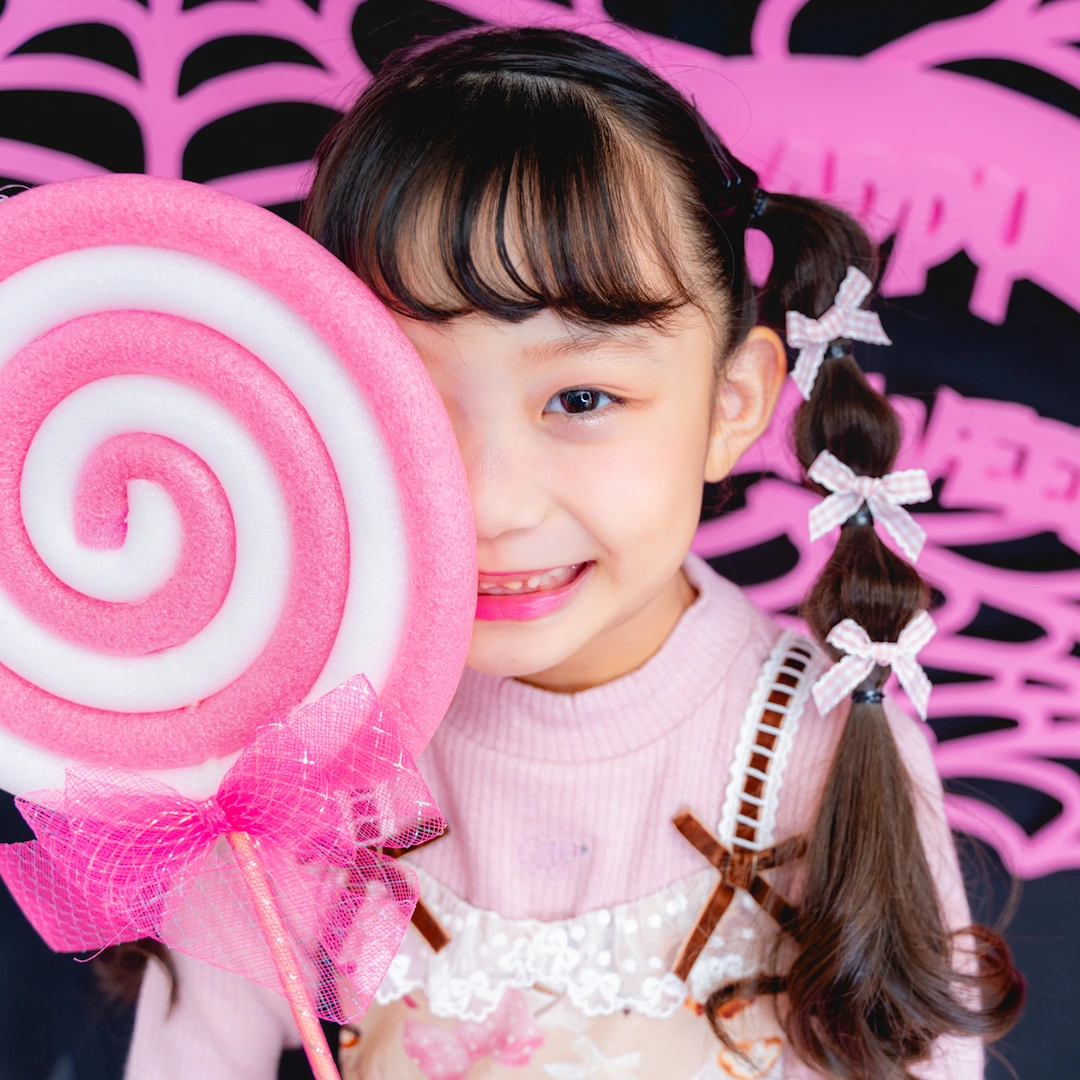 さらに、お顔が隠れちゃうほど大きなキャンディー小物も登場します!