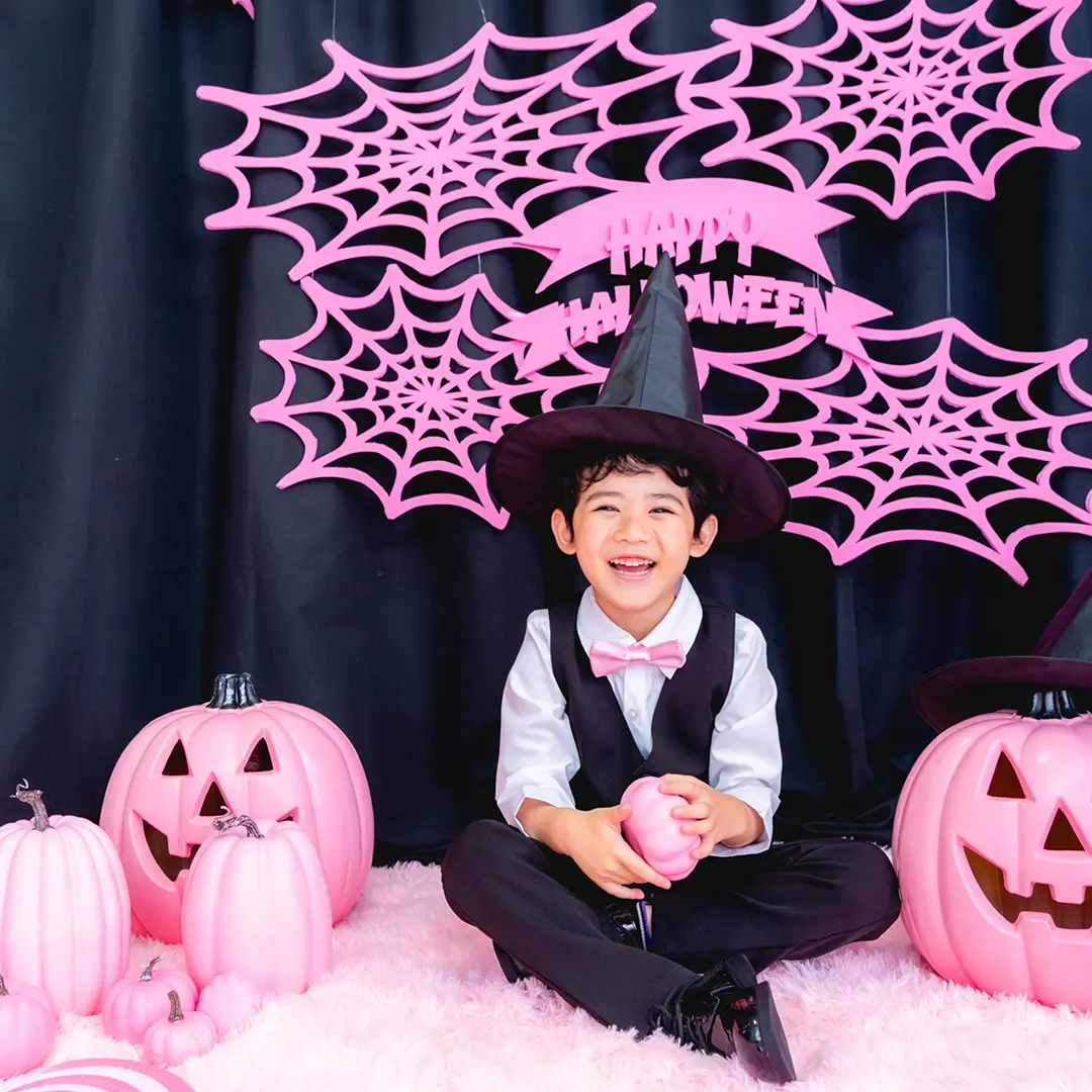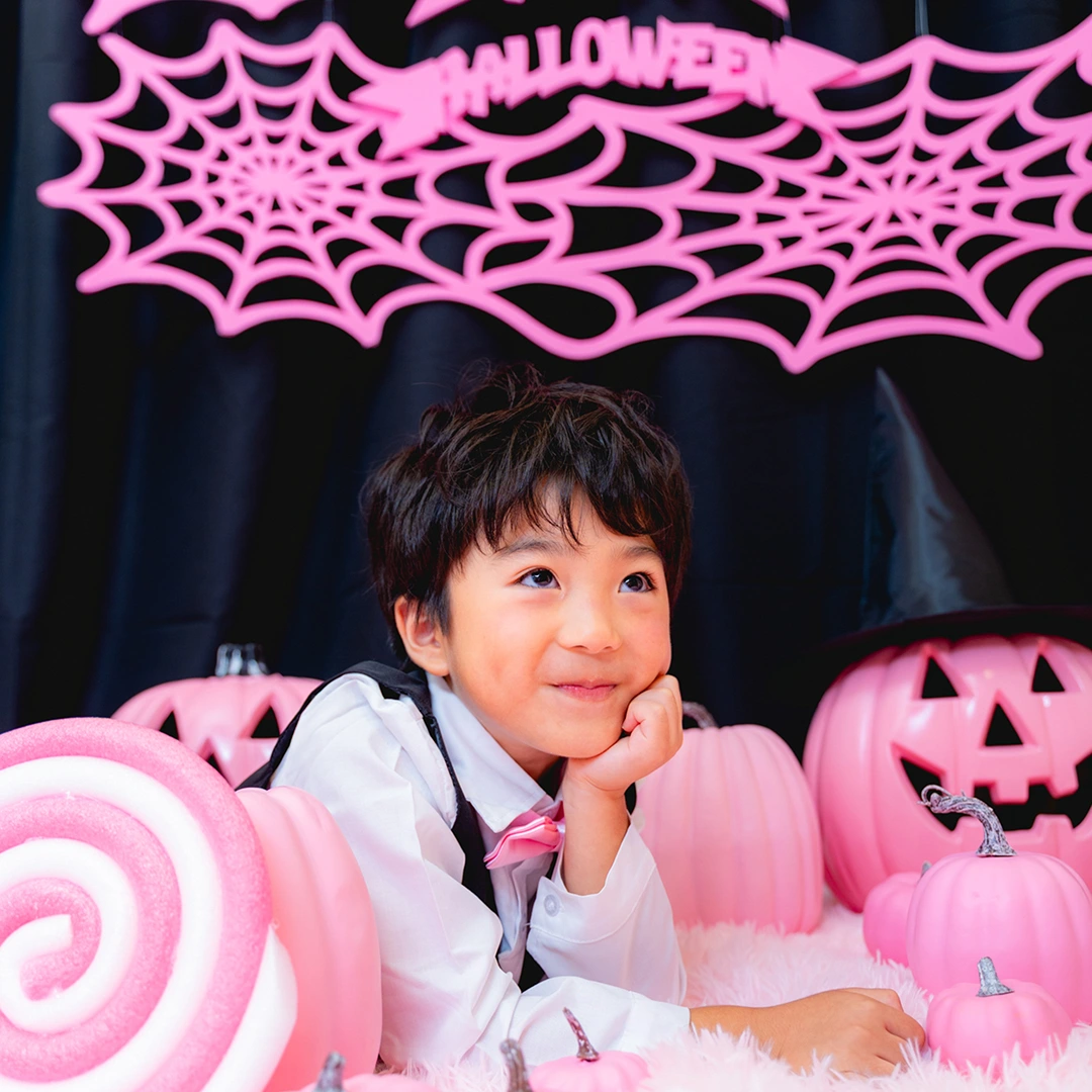 かぼちゃやこうもり、蜘蛛の巣まで、すべてピンクに彩られた空間は
