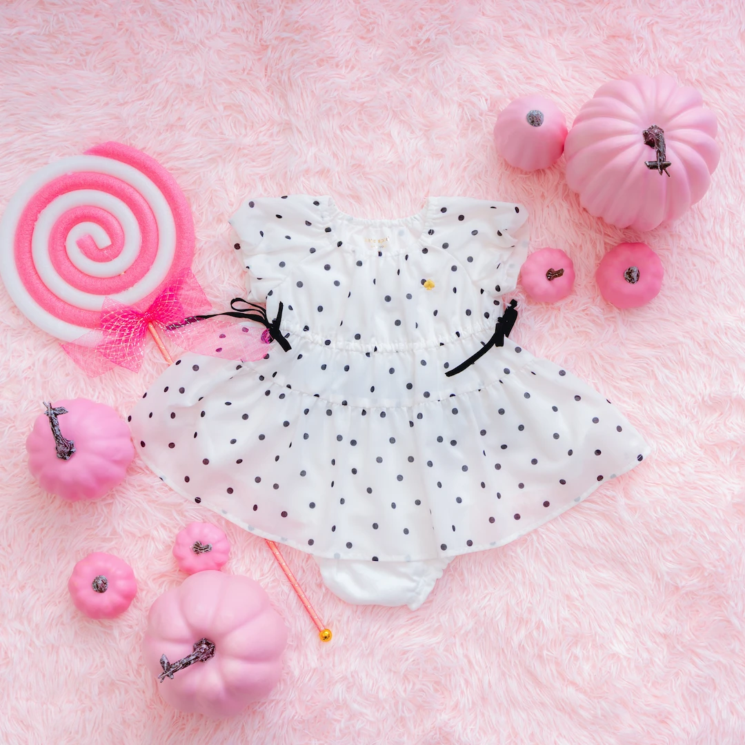 女の子にはmezzo pianoの新作『cafe mezzo piano』の総柄ワンピースを、