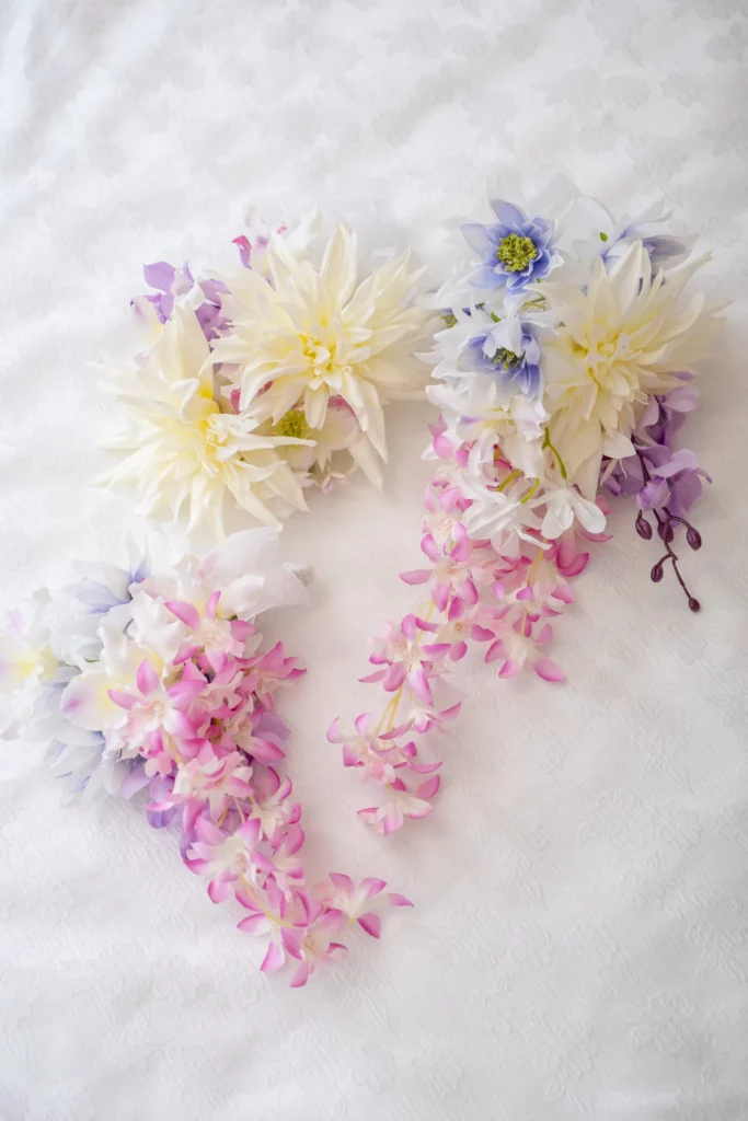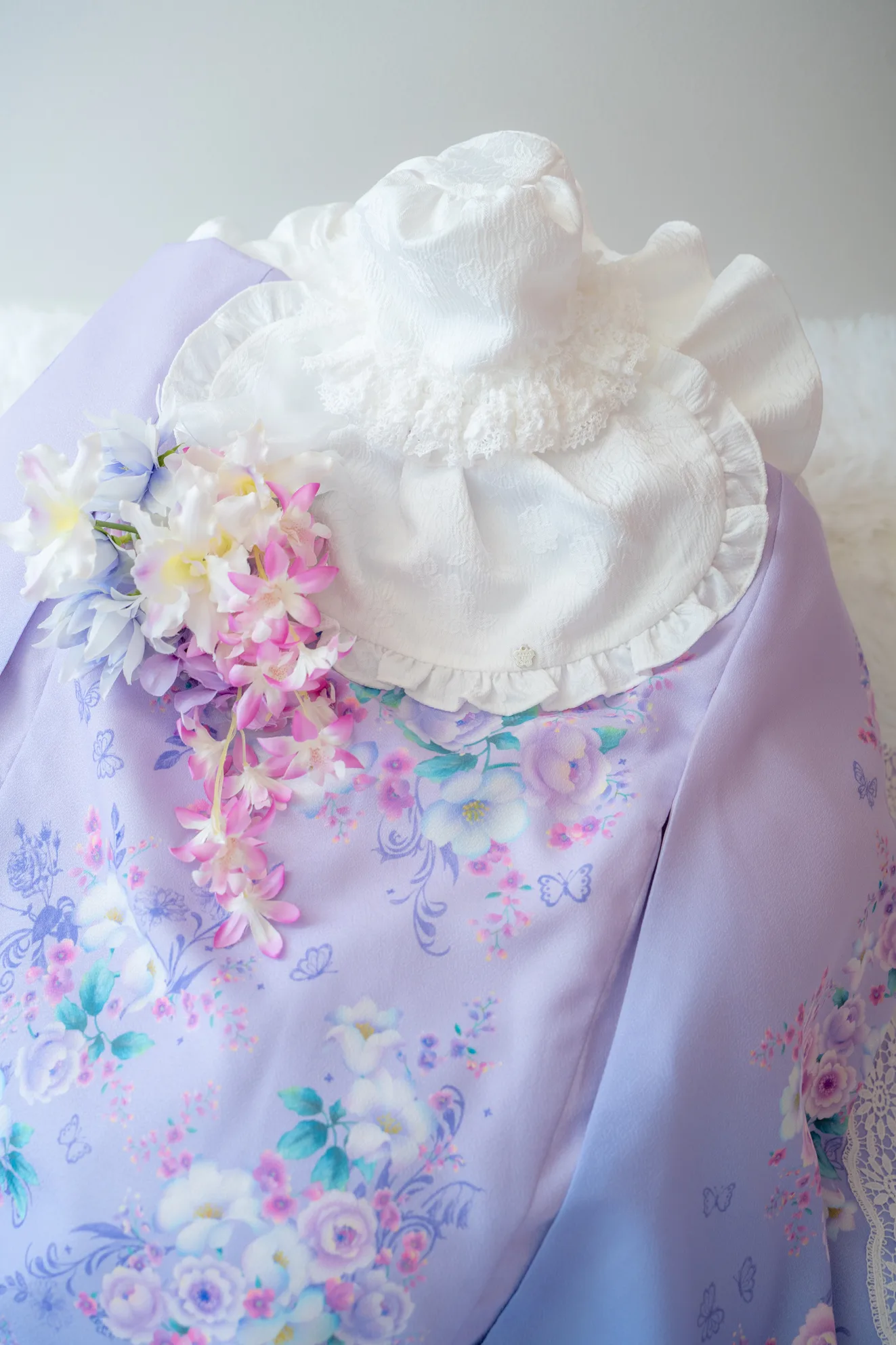 やさしい色合いのフラワーでで表現した、、印象派の絵画のようなアート感あふれる祝着。