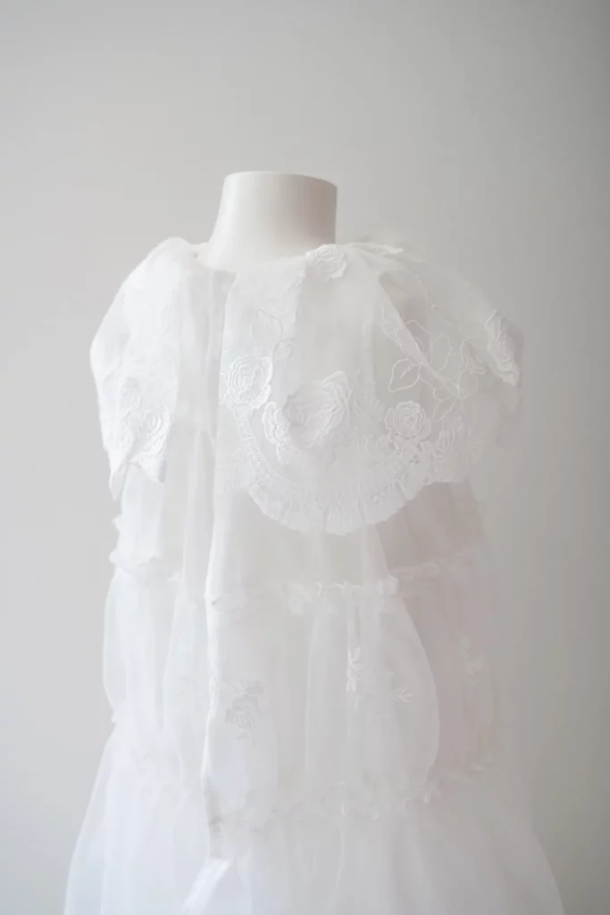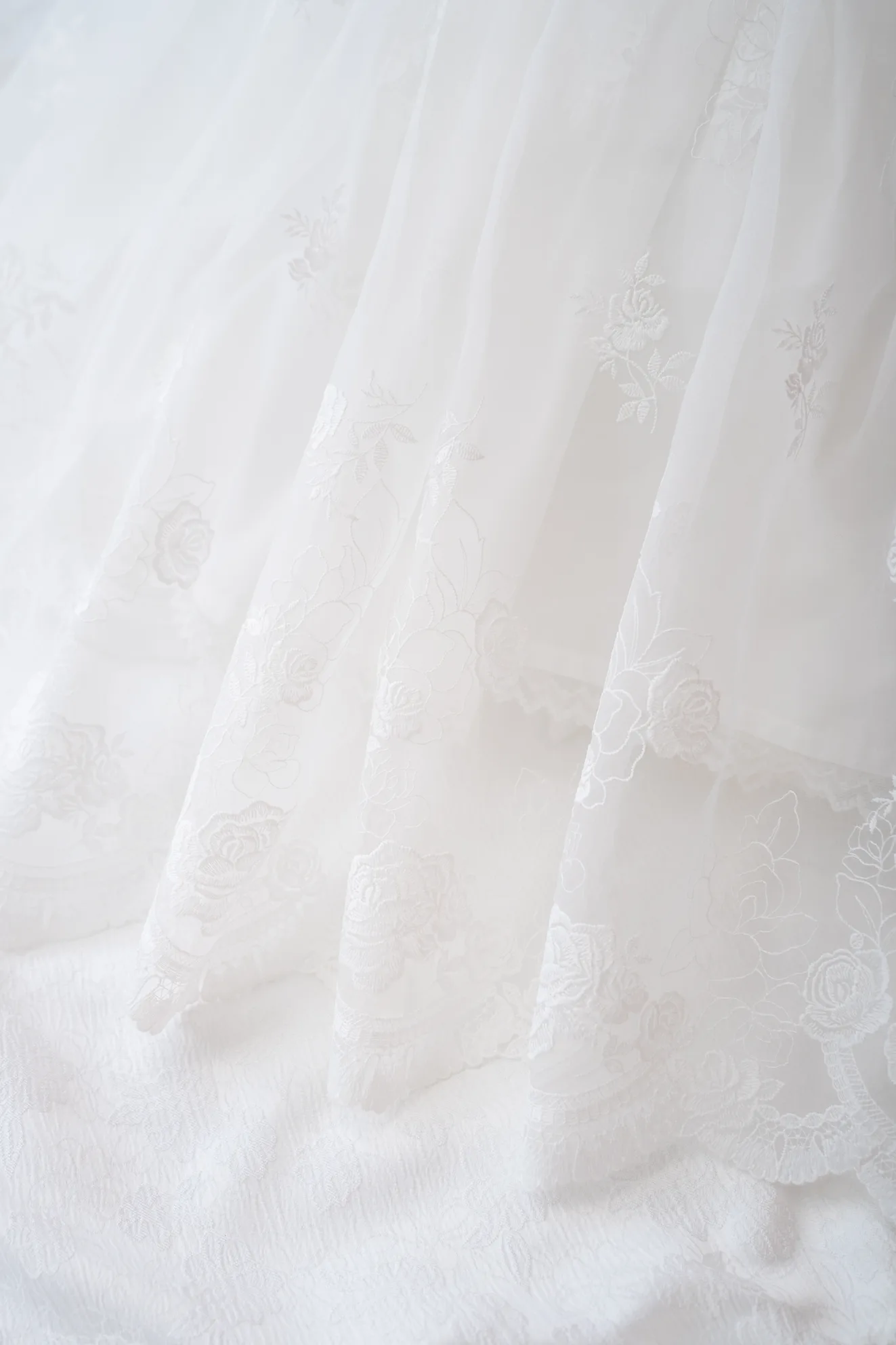 オーガンジーに、繊細な薔薇とスカラップをあしらった