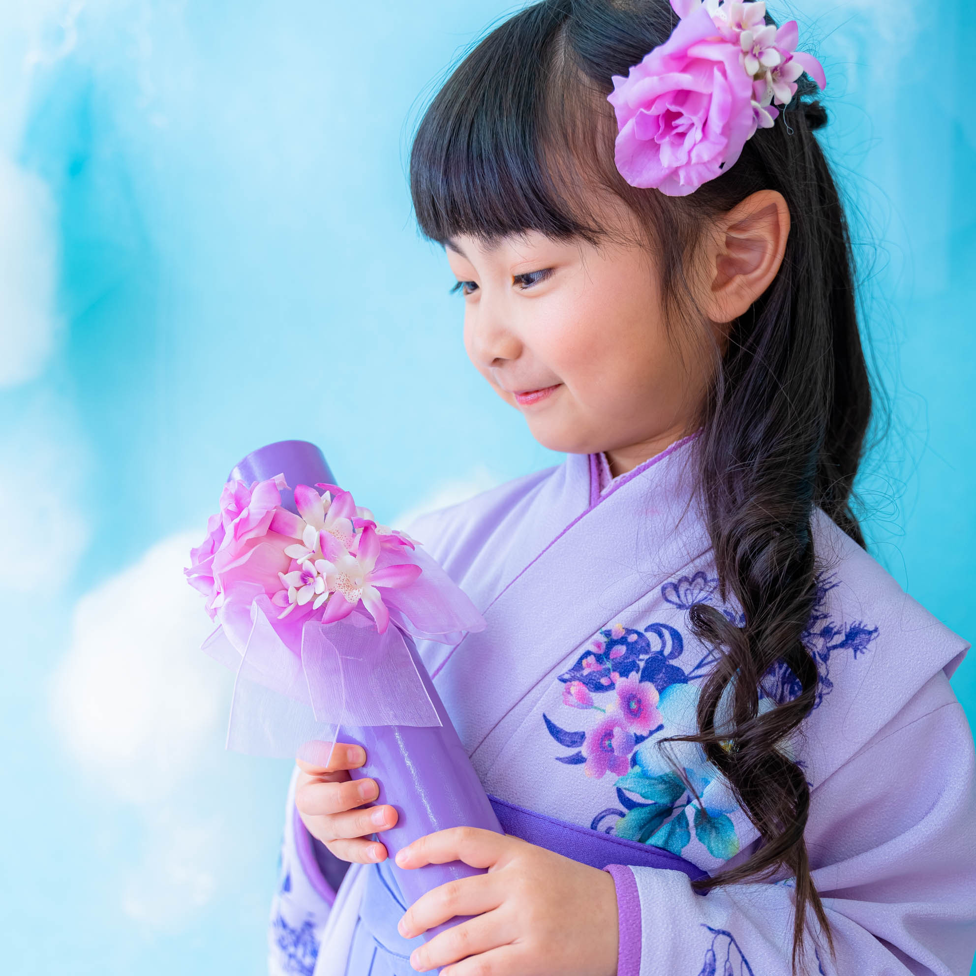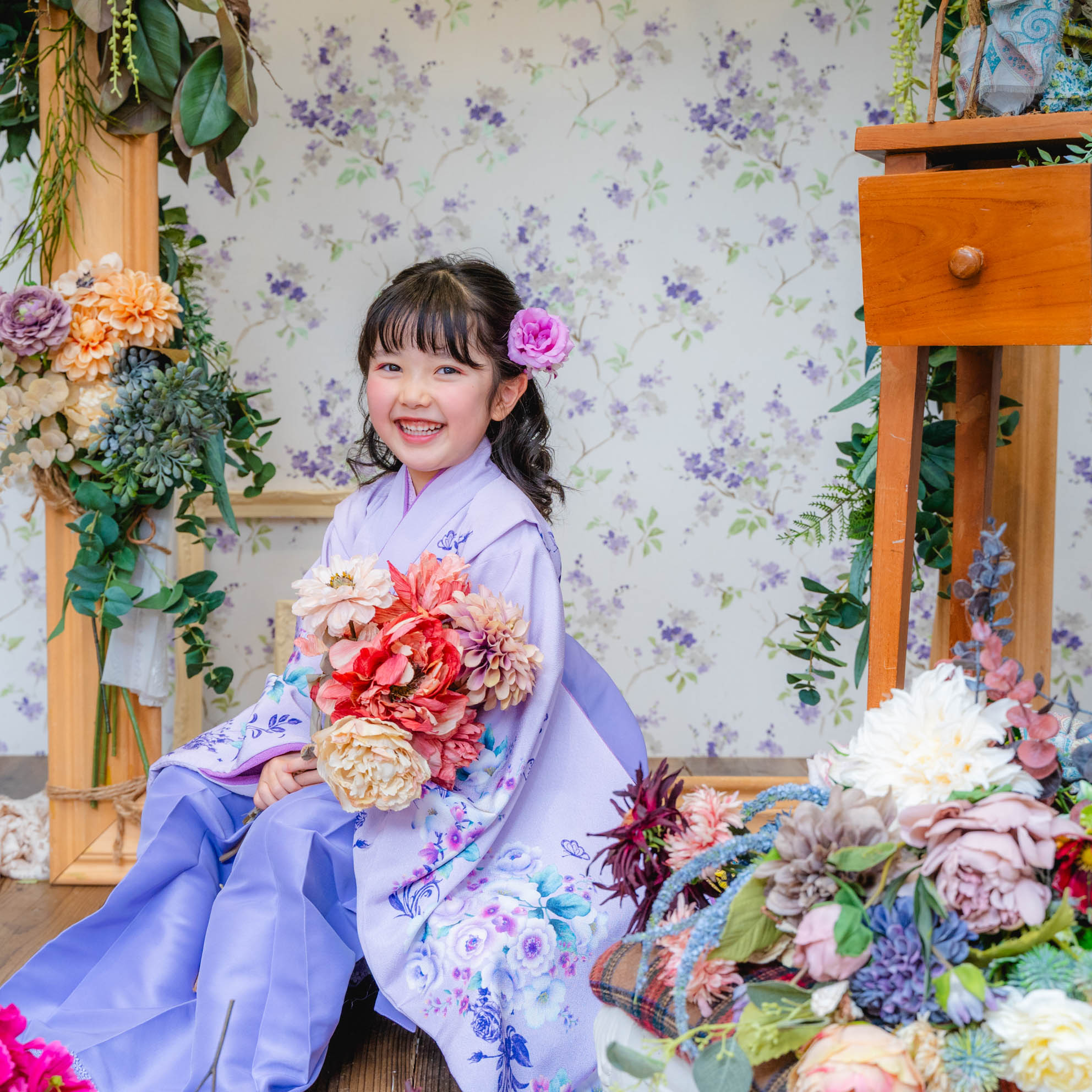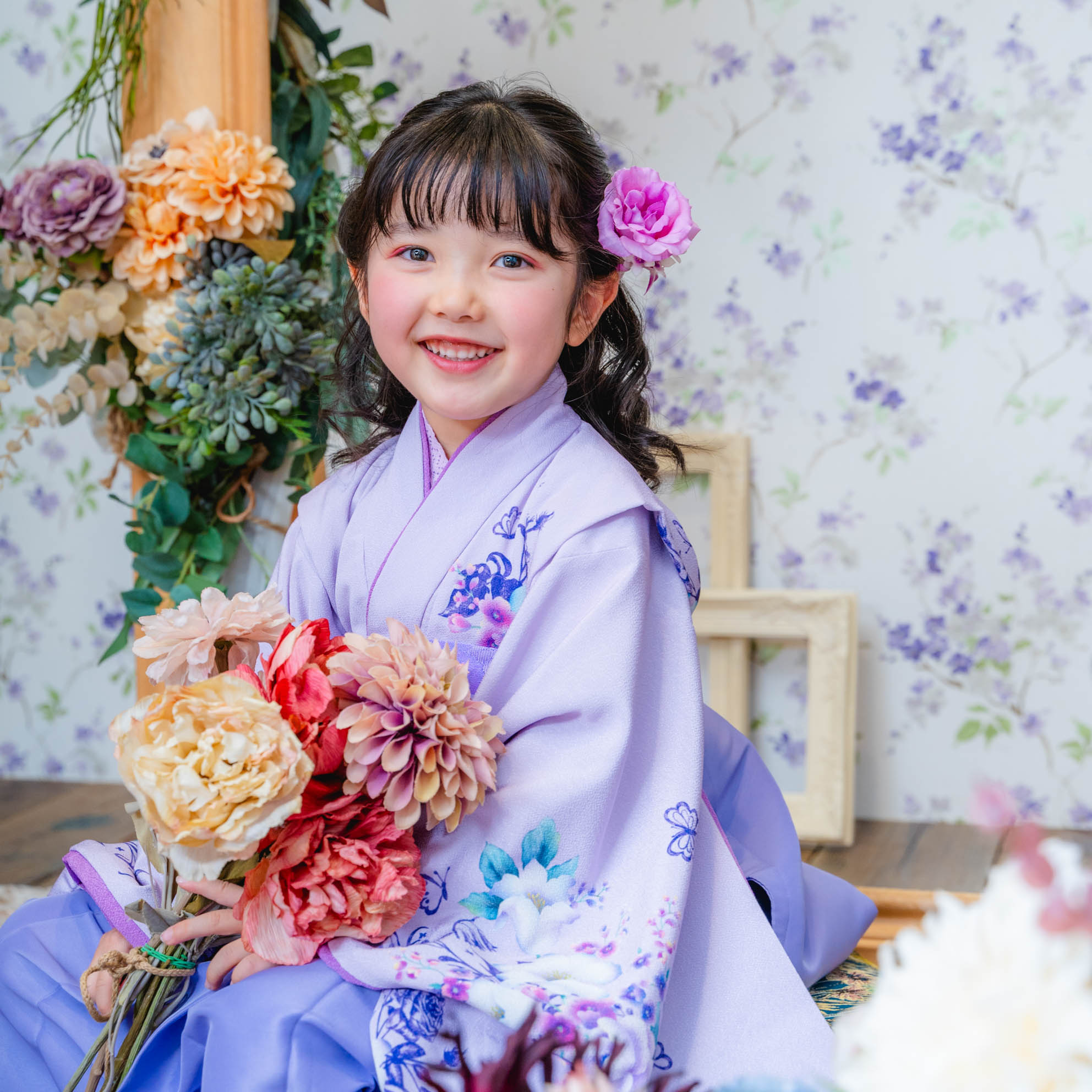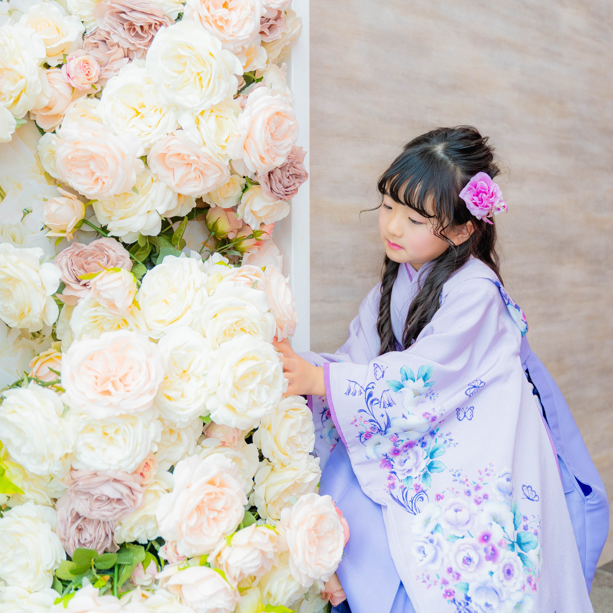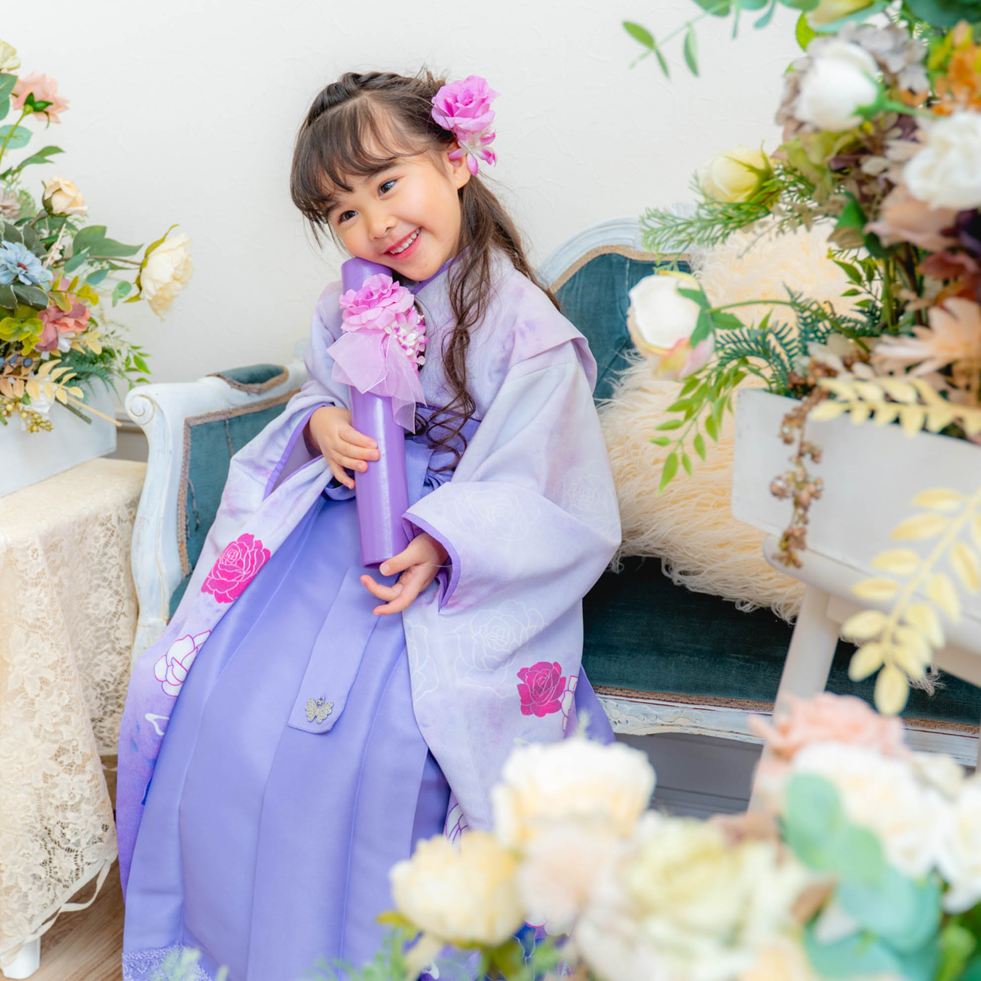 お祝いの記念撮影に美しい華を添えます。