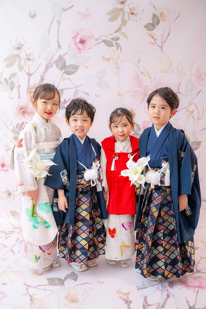 ※各店舗女の子7歳・3歳、男の子5歳・3歳の着物1着ずつのご用意となります。