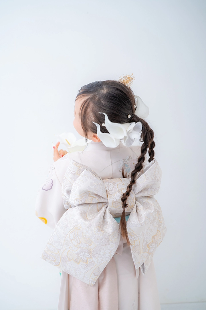 七五三撮影は、満3歳頃からの撮影をオススメしております。年齢に限らず、お着替えやヘアセットをすることを受け入れてくれるようになってからの撮影がオススメです。また、3歳用のお着物のサイズは95㎝〜105㎝が目安となりますので、撮影時期についてご検討ください。