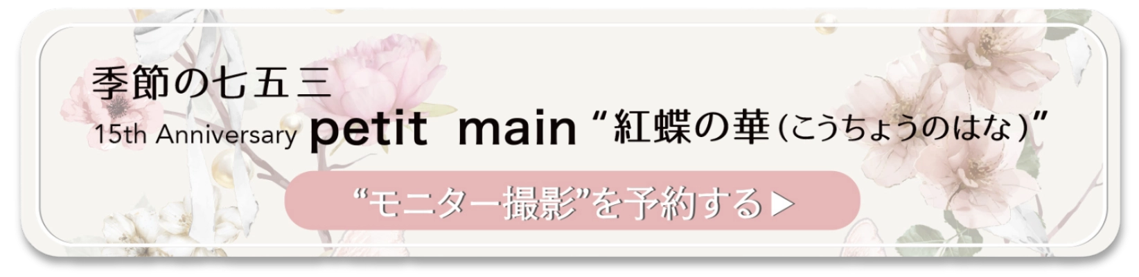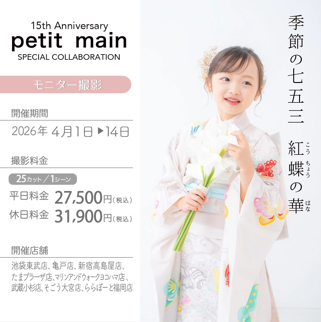 大変申し訳ございません。季節の七五三「petit main “紅蝶の華”」は2026年12月31日までのご案内となります。
