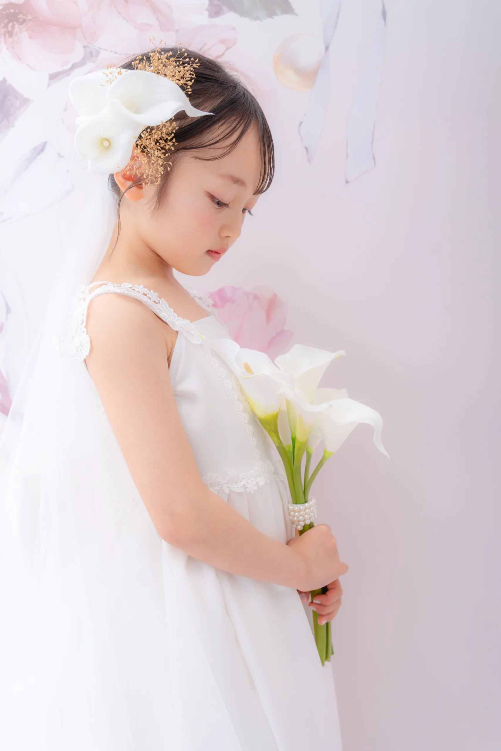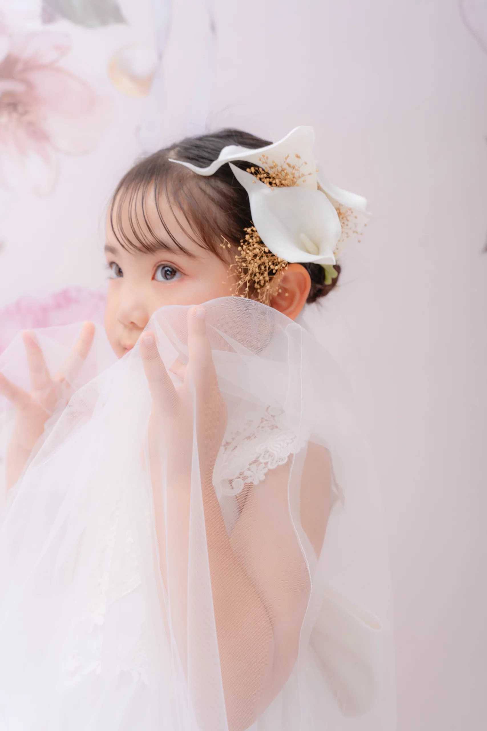 申し訳ございません。季節の七五三「petit main “紅蝶の華”」専用のスタイリングを行いますので、日本髪のアレンジはお受けできません。