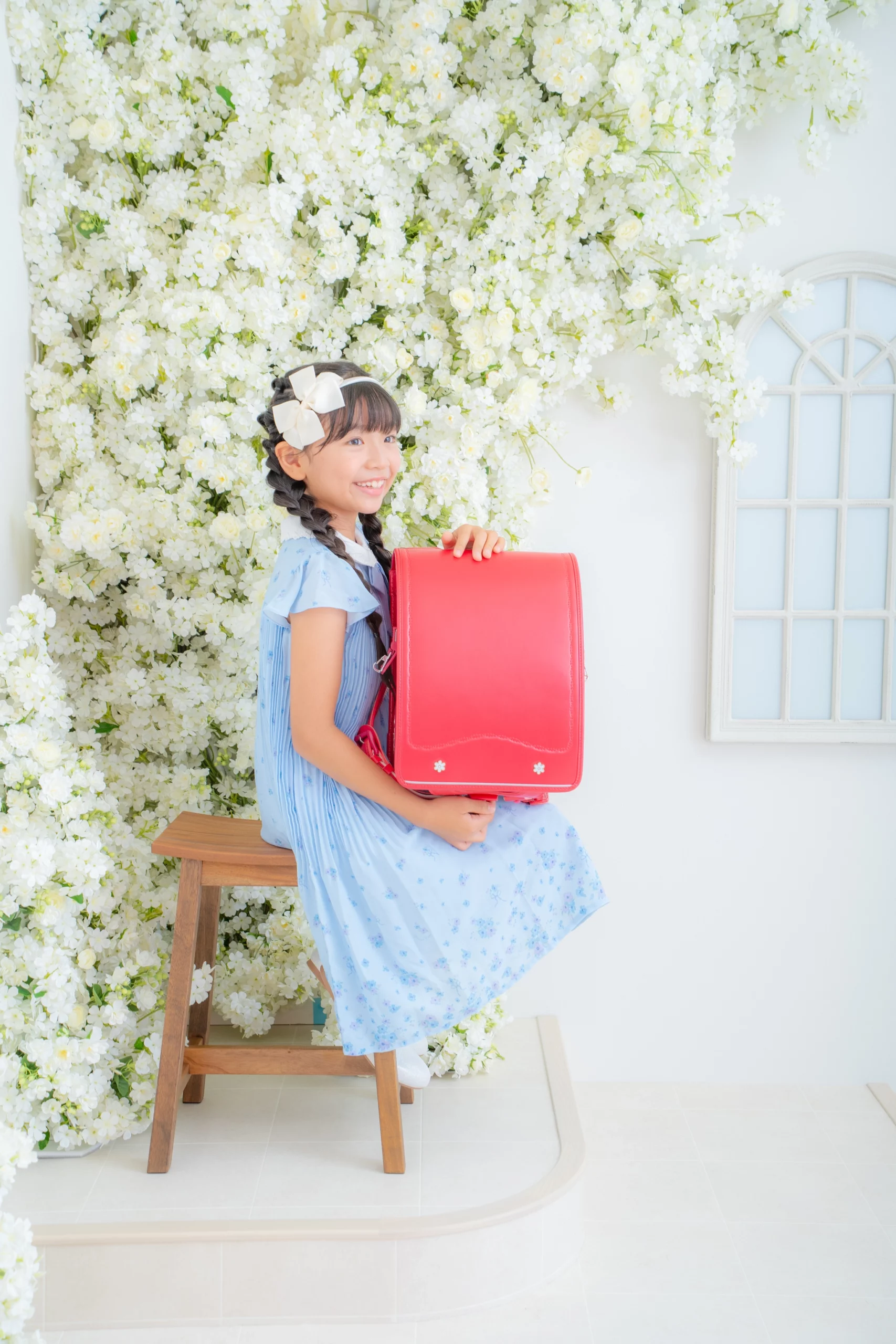 制服・ランドセル・帽子・靴や、教科書・筆箱・体操着・卒園証書などのアイテムをお持ち込みいただくと、写真にオリジナリティが出ておすすめです。