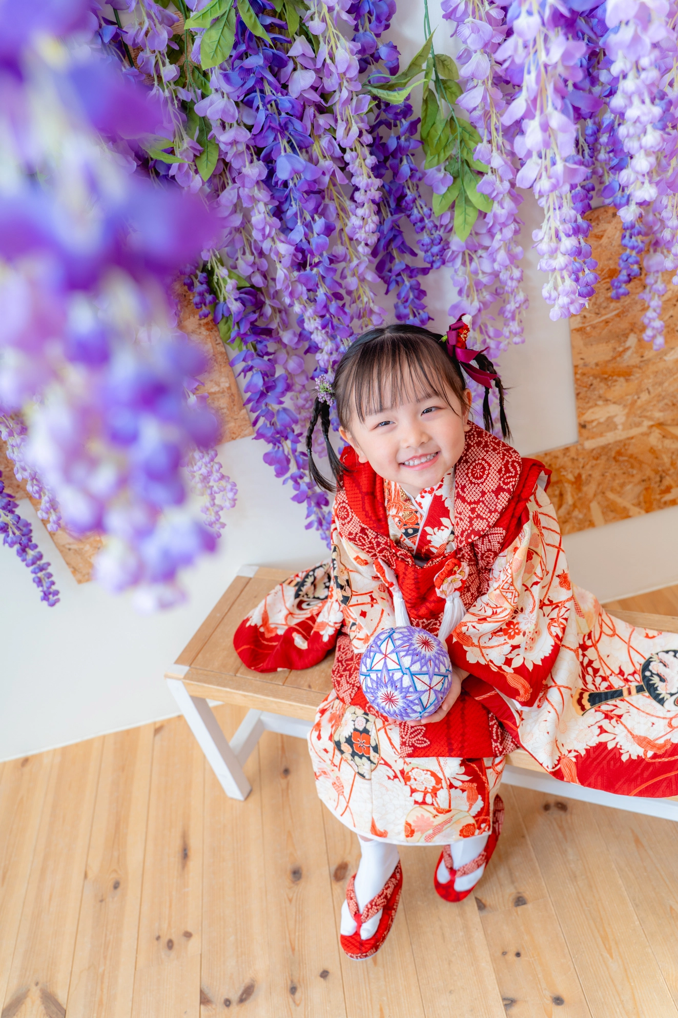 ガーデン西葛西店といえば藤の花!というくらい、和装にも洋装にもぴったりのシーンをはじめ、砂場やテントなど、屋外で遊んでいるような空間も広がっています。